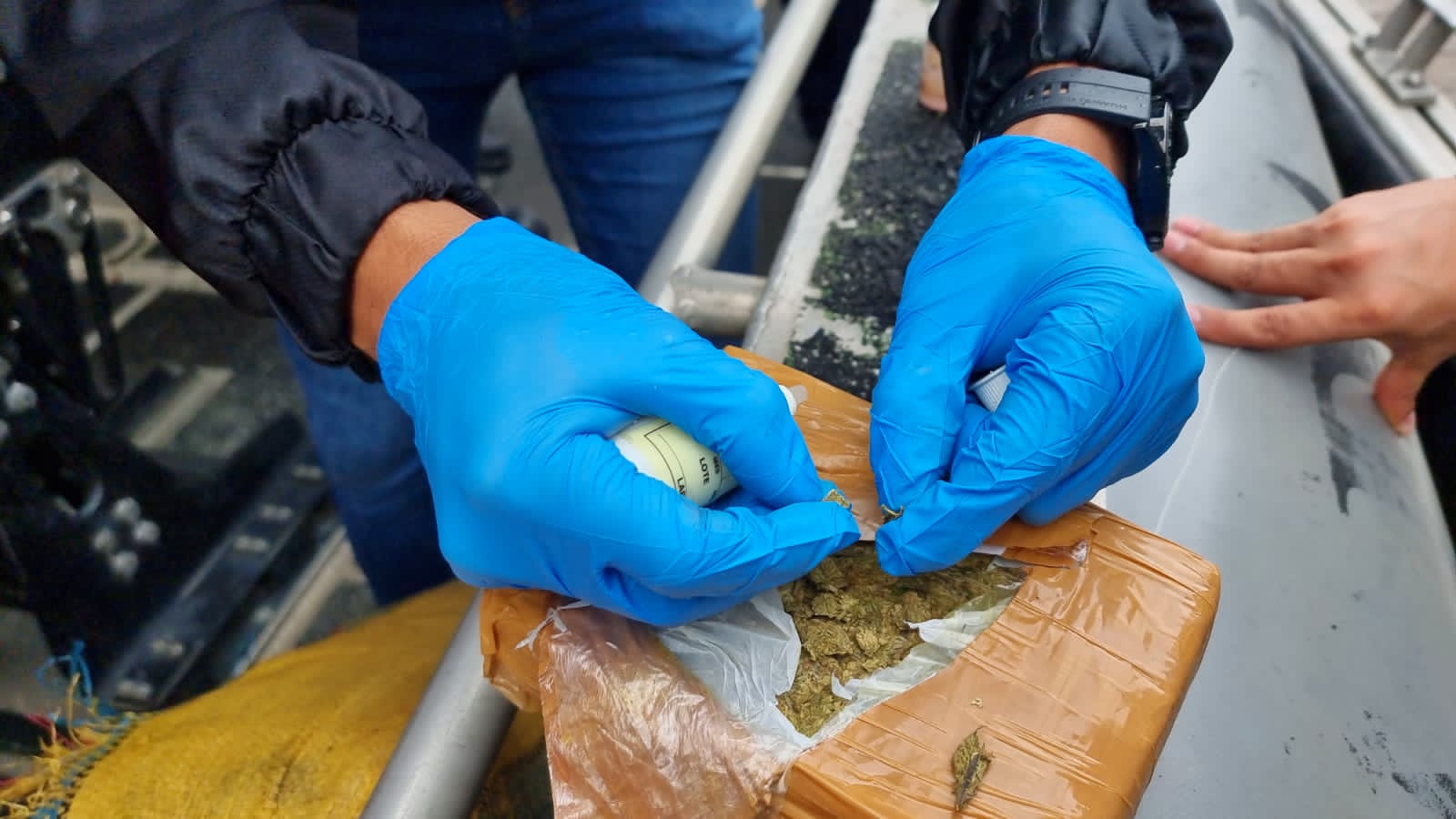 Los sujetos, junto al alijo y la embarcación fueron trasladados hasta la Estación de Guardacostas de Tumaco, donde funcionarios del Cuerpo Técnico de Investigación adelantaron la verificación de las sustancias confirmando positivo para marihuana un total de 2.915 kilogramos.