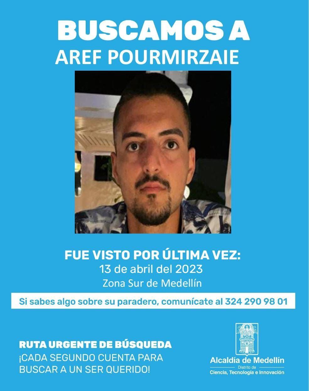 El oficial recalcó que el joven Aref Poumizaie de 25 años estaba solo en la ciudad, además, que tratan de ubicarlo rápidamente para tranquilidad de la familia, incluso su madre llegó a la ciudad para tocar puertas y presionar la búsqueda.