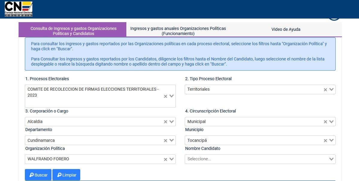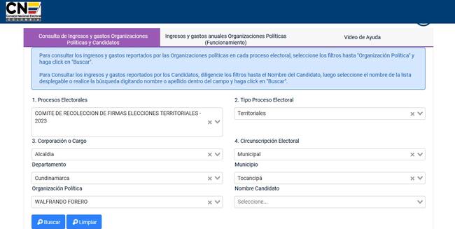 Al hacer la Consulta en el portal del Consejo Nacional Electoral se identifica el nombre del señor Forero como participante del proceso electoral para la recolección de firmas a elecciones territoriales en este año.