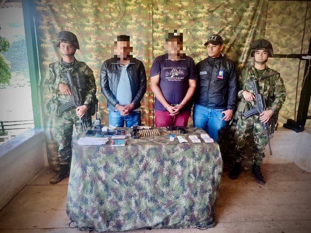 Los judicializados fueron ubicados en la vereda El Silencio y también tenían 15 millones de pesos en efectivo.