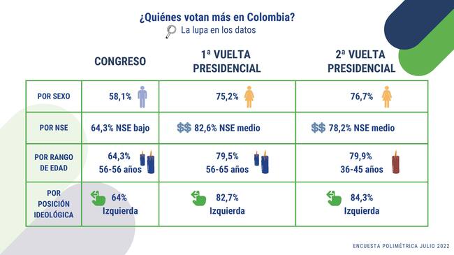 Adicionalmente durante las elecciones Presidenciales de segunda vuelta en el 2022, mujeres de 36 a 45 años de estrato medio, tomaron un papel decisivo en los resultados electorales.