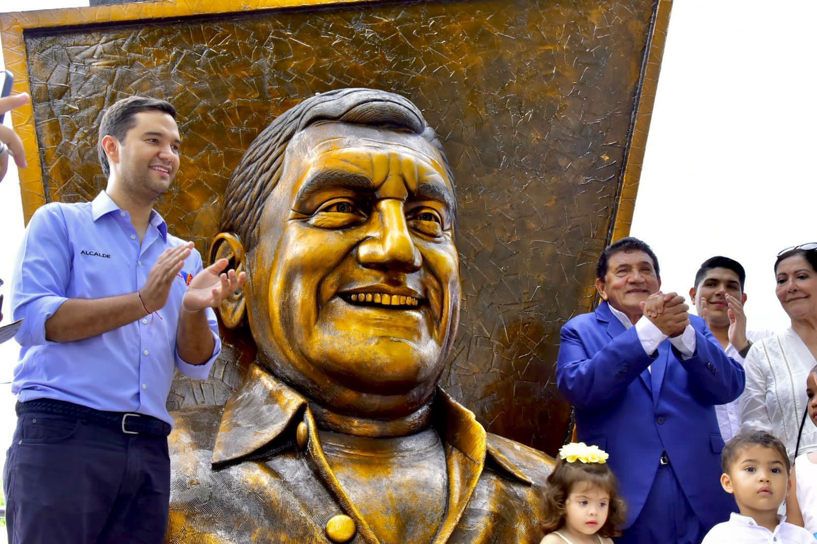 Acompañado de familiares, amigos y artistas de la música vallenata, ‘El Pulmón de Oro’, recibió este merecido reconocimiento, en un acto donde se reveló a todos los asistentes la escultura de color bronce, hecha en resina epóxica y fibra de vidrio, con medidas de 3.80 metros de alto por 2.80 de ancho, con su respectiva estructura metálica interna.
