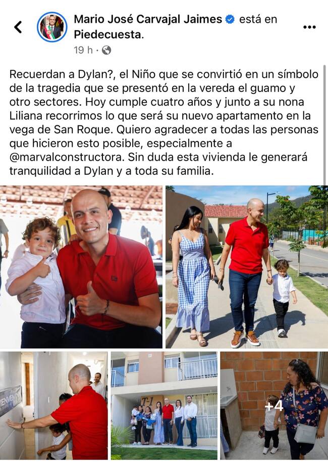 El alcalde de Piedecuesta, Mario José Carvajal, informó que el pequeño ya tiene un apartamento para compartirlo con su padre y su abuela. “Junto a su nona Liliana recorrimos lo que será su nuevo apartamento en la vega de San Roque.”