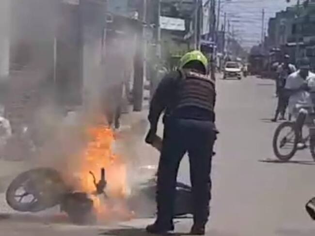 Un acto de intolerancia se presentó en el barrio Fredonia cerca al CAI de Policía, donde un hombre prefirió prenderle candela a su motocicleta para evitar que fuera inmovilizada.