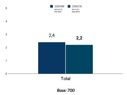 En cuanto al avance de la Paz Total del Gobierno Nacional, donde las personas encuestadas lo calificaron de 1 a 5 (1 es muy mal y 5 muy bien), el resultado fue el siguiente: