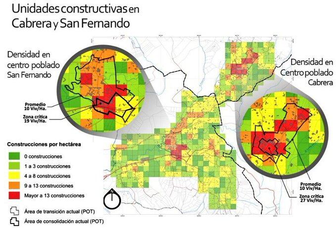 Según Inti Mesías, director de Territorios, mientras el POT limita a 1,3 viviendas por hectárea en las denominadas “áreas de transición” (Art 34: parcelas mínimas de 3.300 m2), el estudio y trabajo de campo muestran que la construcción se encuentra totalmente desbordada, con una densidad predominante en ambas cabeceras corregimentales de 10 viviendas por hectárea.