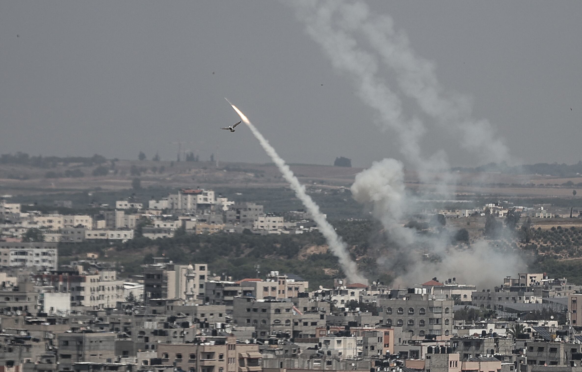El humo se eleva tras la respuesta de los palestinos a los ataques aéreos israelíes con cohetes desde Gaza, en la ciudad de Gaza, Gaza, el 10 de mayo de 2023. Foto: Mustafa Hassona/Agencia Anadolu a través de Getty Images. / Anadolu Agency
