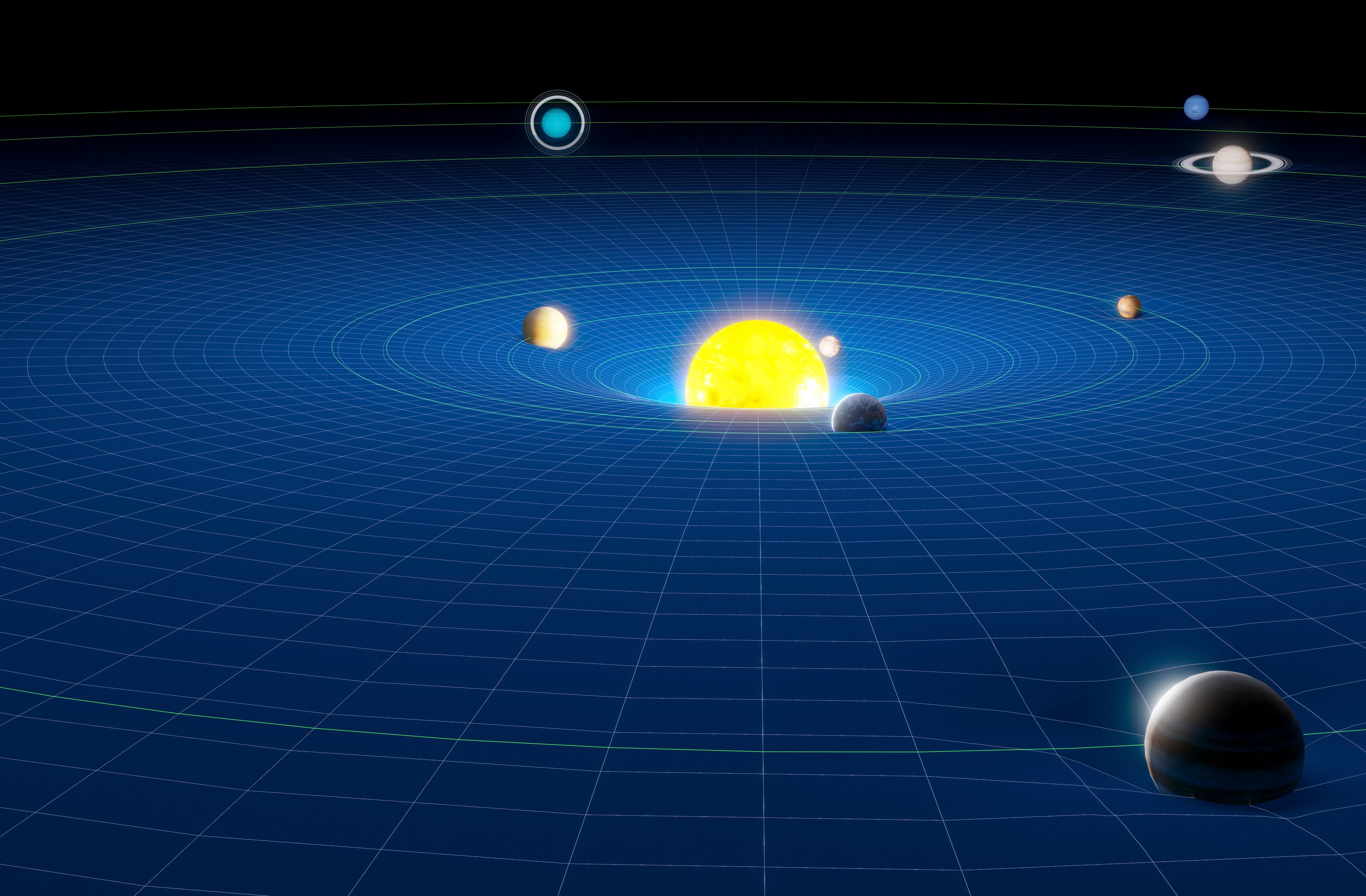 Como si se tratara de una Ábana estirada, cuando se le pone una esfera pesada, esta se curvará a su alrededor.