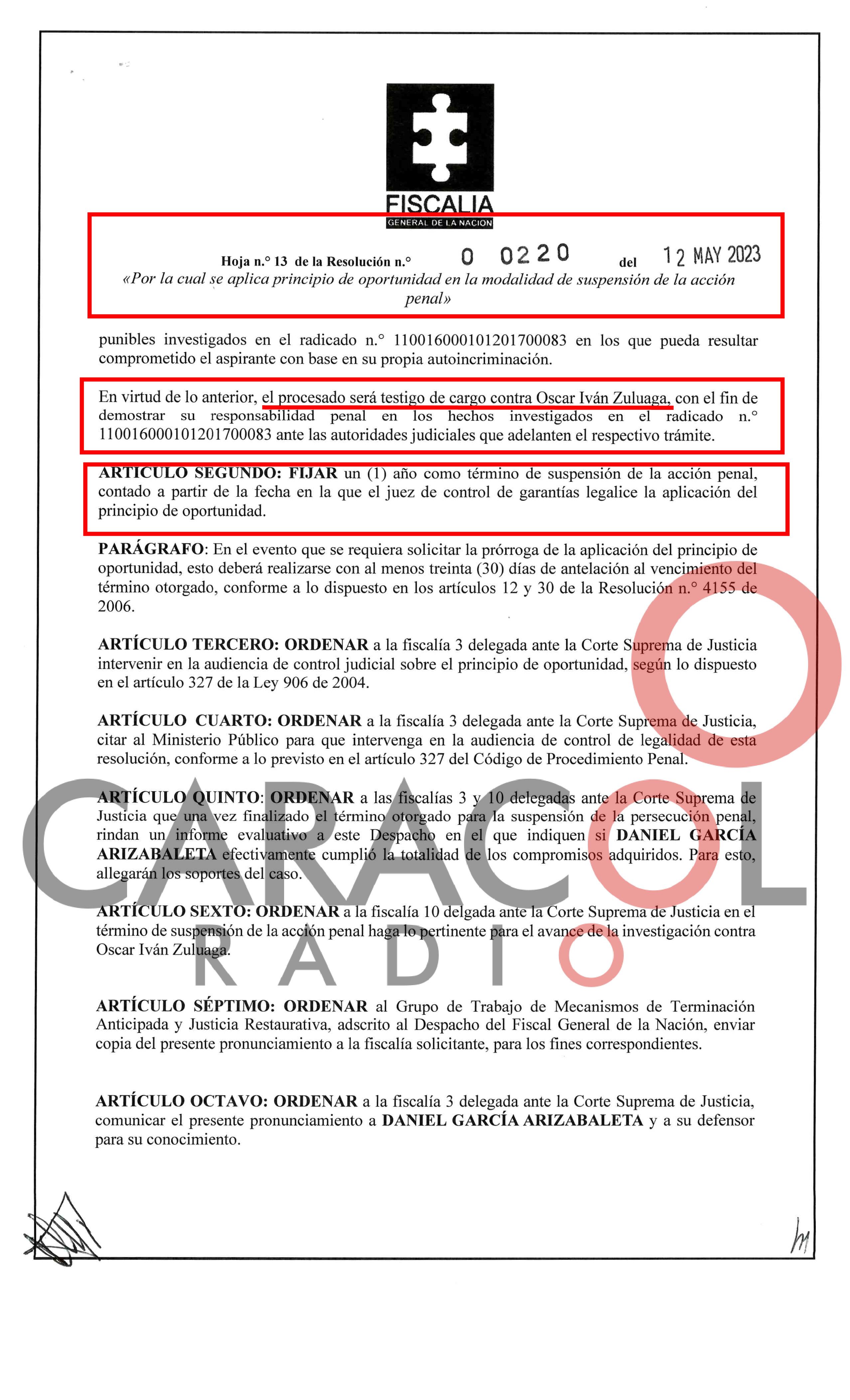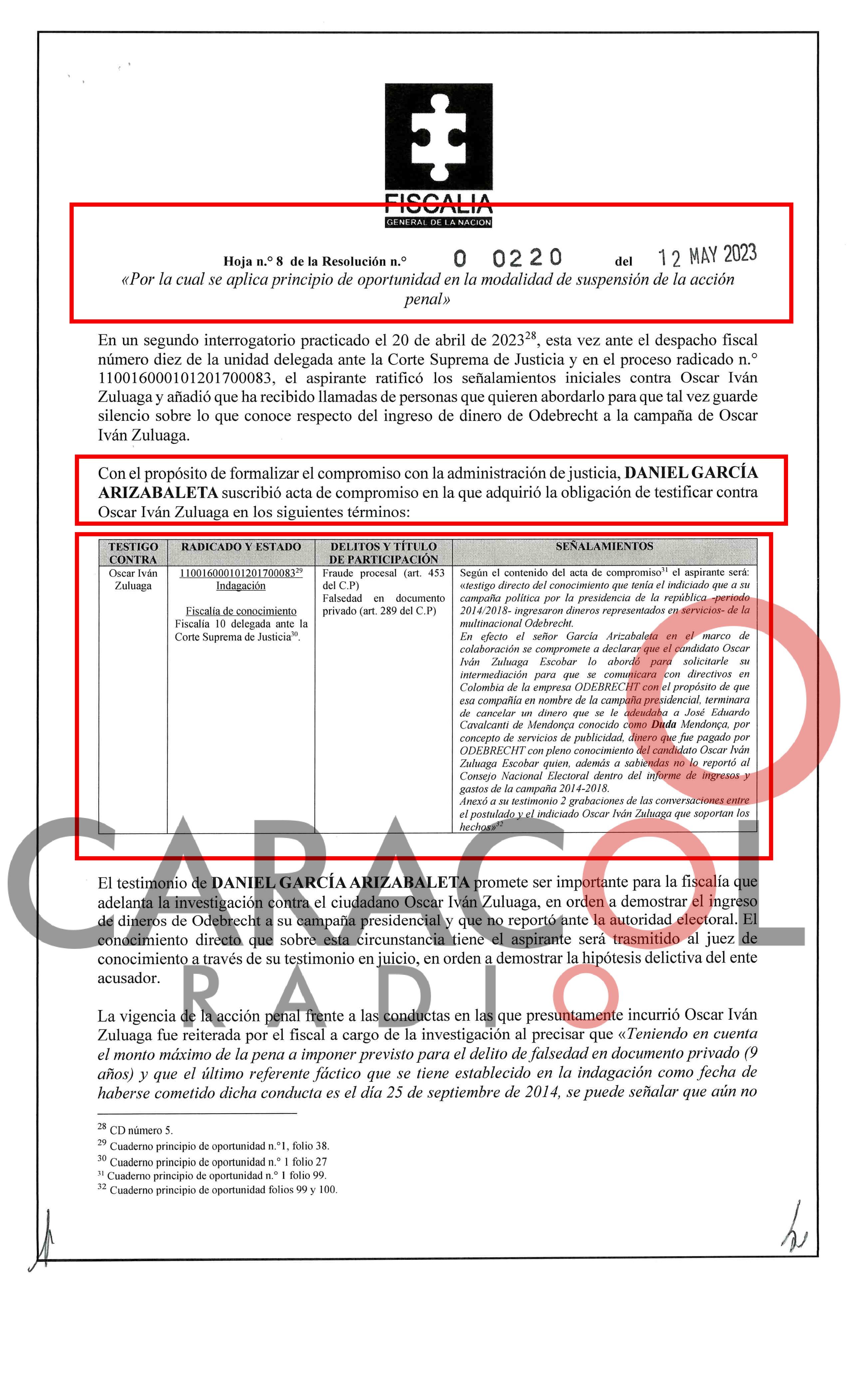 El ente acusador le otorgó un principio de oportunidad al exdirector del INVÍAS Daniel García Arizabaleta y será testigo contra el excandidato presidencial por presunto ingreso de dineros de la multinacional a esa campaña