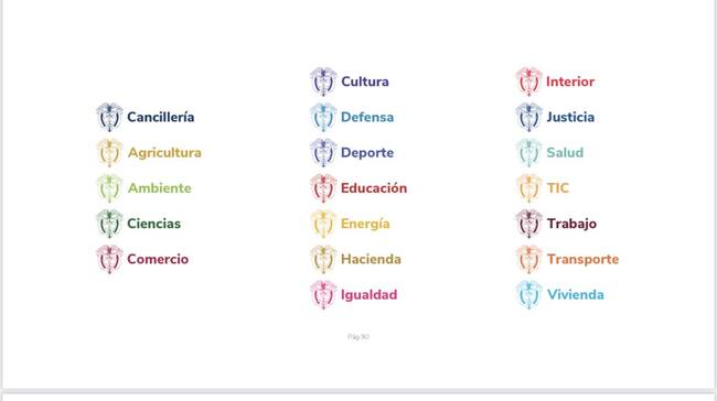 La firma tambien cambiará los colores de cada una de las entidades y ministerios, entre ellos el ministerio de Educación tendrá el color rojo, Ministerio de Energía amarillo, Ministerio de la Igualdad será de color Fucsia, el Ministerio de ambiente llevará el color Verde y la Cancilleria azul oscuro.