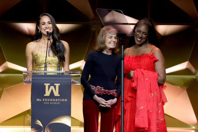 NEW YORK, NEW YORK - MAY 16: Woman of Vision Meghan, The Duchess of Sussex speaks onstage with Gloria Steinem and Teresa Younger during the Ms. Foundation Women of Vision Awards: Celebrating Generations of Progress & Power at Ziegfeld Ballroom on May 16, 2023 in New York City. (Photo by Kevin Mazur/Getty Images Ms. Foundation for Women) / Kevin Mazur