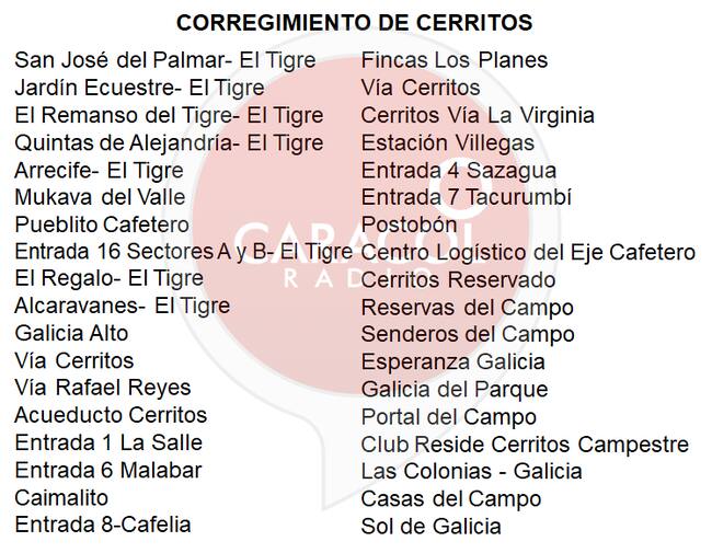 Desde la empresa Aguas y Aguas de Pereira indicaron que entre las 5:00 p.m. del lunes 22 de mayo y las 7:00 a.m. del martes 23 de mayo, habrá suspensión del servicio de agua potable en 154 barrios del suroccidente de la ciudad, esto debido a que el contratista de las obras de la conexión vial del Aeropuerto Matecaña, debe realizar el empalme de la red de acueducto de 20 pulgadas que pasa por el sector.