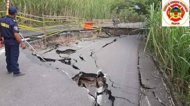 Tras el colapso de la calzada se tiene cerrada la vía Supía - El Palo, occidente de Caldas