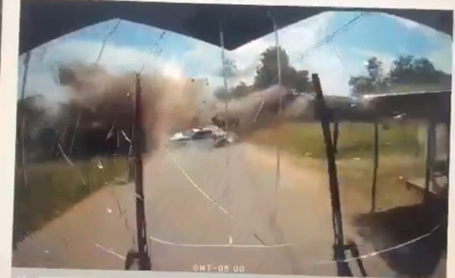 En video de una cámara de seguridad de un bus que presta el servicio especial, hacia el municipio de Tibú, quedó registrado el momento exacto en que se presentó la activación del artefacto explosivo contra la patrulla policial, que dejó como saldo tres personas muertas y 11 heridos.