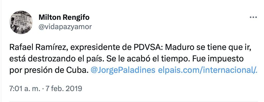 Se trata de una serie de trinos que desde el 2015 afirmaban que el drama venezolano fue generado por el accionar de Maduro, su capacidad de llevar a la ruina a Venezuela y promover la corrupción en el país.
