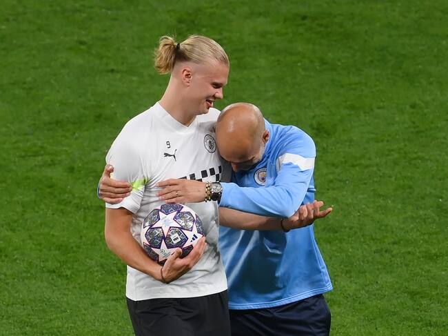 Erling Haaland junto con Pep Guardiola en el Manchester City. (Photo by Shaun Botterill/Getty Images) / Shaun Botterill