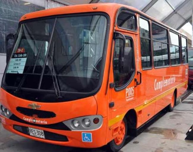 Son los buses verdes, similares a los articulados, que permiten movilizar a los usuarios desde y hacia las zonas aledañas a los portales y estaciones intermedias del Sistema Transmilenio. La tarifa por el uso de estos buses se incluye en el cobro de los buses troncales, por lo cual no realizan un cobro adicional por sus servicios.