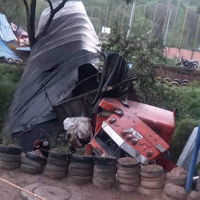 El grave accidente ocurrió al norte de Bucaramanga, justamente a la entrada del barrio Betania cuando el camión de placas XVK -679 cargado de carbón terminó estrellándose contra una caseta del sector.
