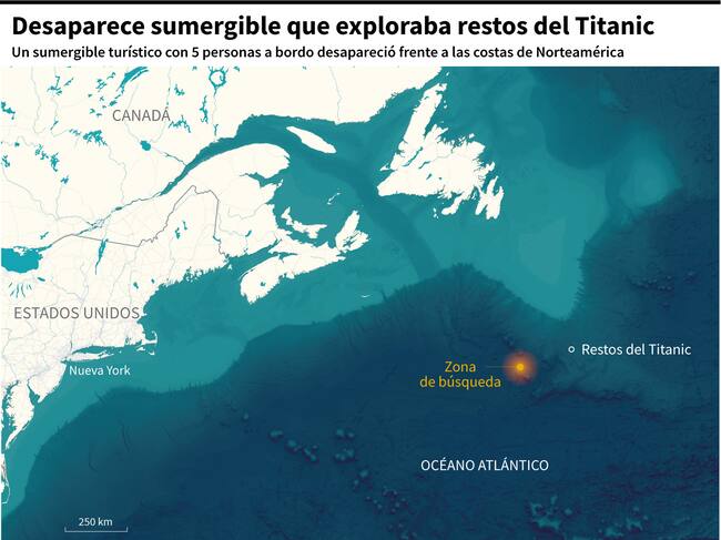Equipos de rescate de Estados Unidos y Canadá continúan trabajando para encontrar al submarino que desapareció en medio de una expedición para conocer los restos del Titanic.