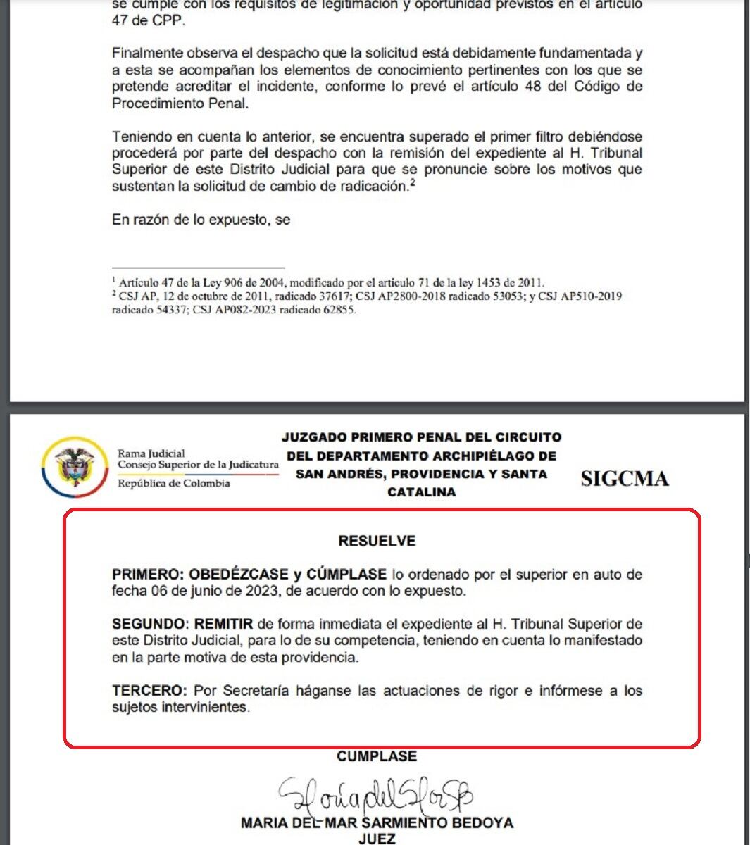 Juez de San Andrés remite el proceso al Tribunal Superior