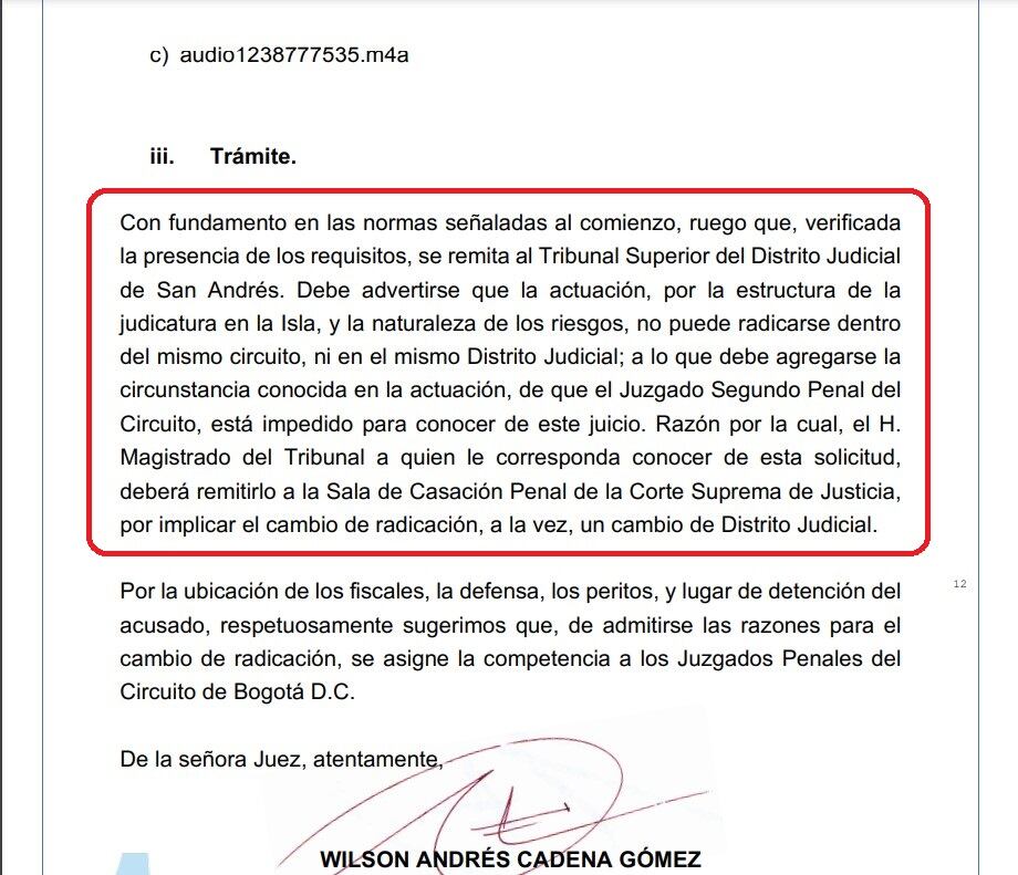La solicitud de cambio de radicación se produjo un día después de que el Tribunal Superior de San Andrés tumbó alrededor 60 pruebas de las 102, que la defensa de José Manuel Gnecco pretendía ingresar a juicio.