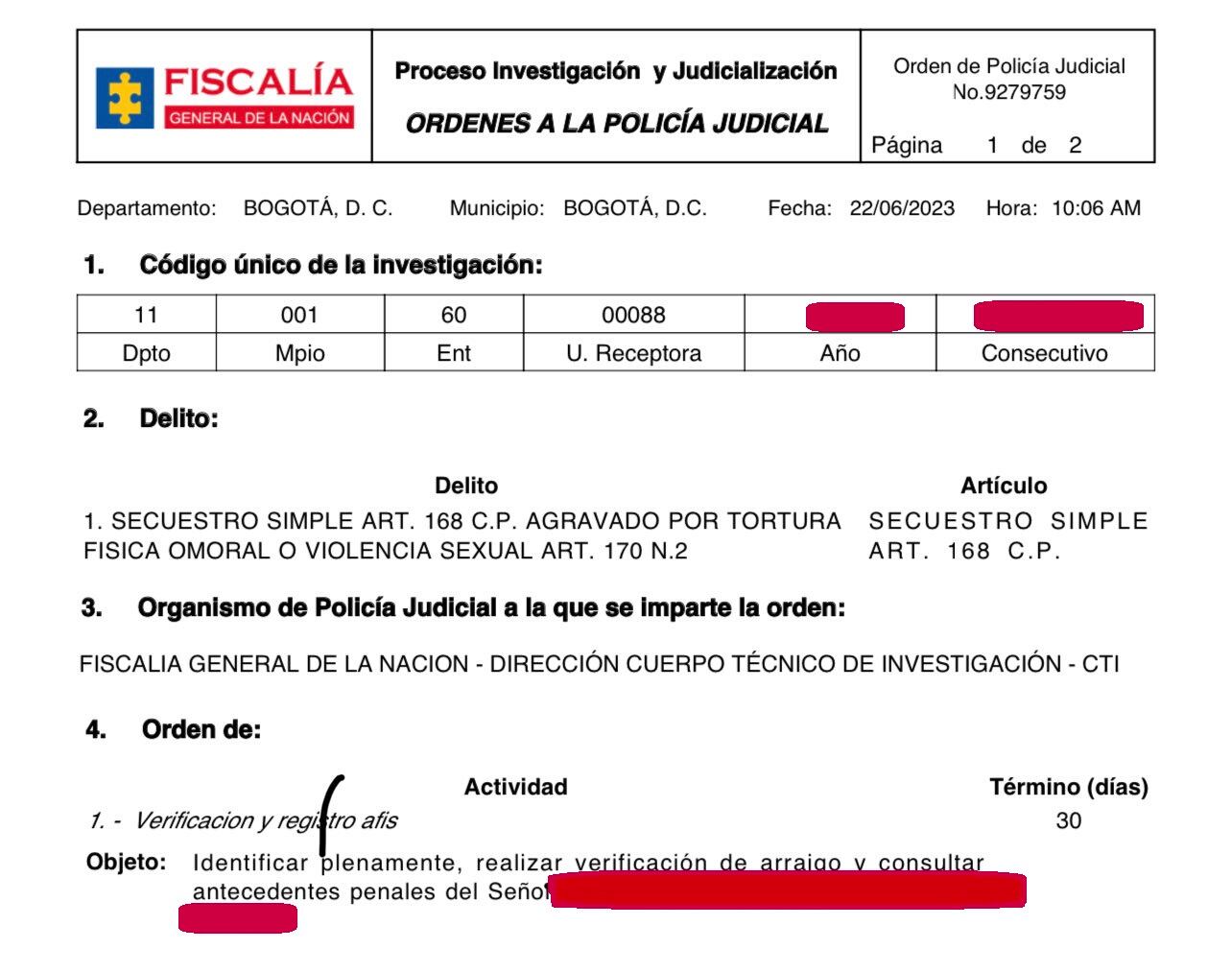 El abogado por el que indaga la Fiscalía, y de quien, por ahora, Caracol Radio reserva su nombre, es investigado por los delitos de secuestro simple, con circunstancia de agravación punitiva.