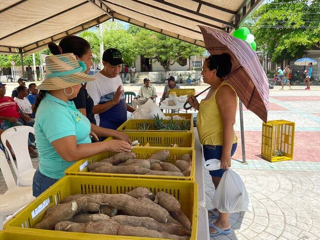 La conversación entre Etalides y Víctor tuvo lugar en el mercado campesino organizado por la Alcaldía, donde los agricultores ofrecieron sus productos a precios accesibles, incluyendo limones, yuca, plátano, aguacate, naranja, ñame, maíz, queso, suero, mangos de diversas variedades, bollos, pasteles e incluso almuerzos.