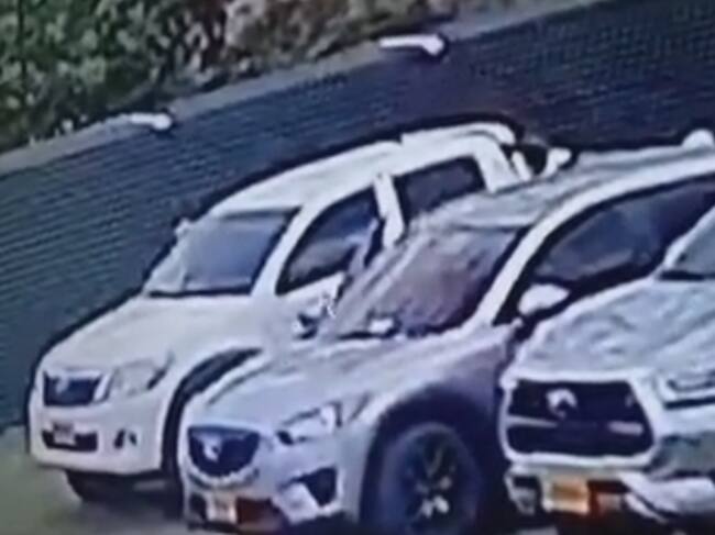 En cámara de video se observa a dos sujetos que entraron en un automotor y fueron los que cometieron el hurto del parqueadero que no contaba con vigilancia.
