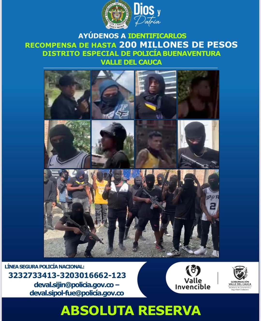 El coronel Ever Yovanni Gómez Reyes, Comandante del Departamento de Policía Valle, informó que se encuentran desplegados en el territorio con actividades de prevención, inteligencia y Policía judicial en articulación con la Armada Nacional, autoridades Político -Administrativas y Fiscalía General de la Nación en el municipio de Buenaventura, con el fin de dar con la captura de estas personas y poder devolverles la tranquilidad a sus habitantes.