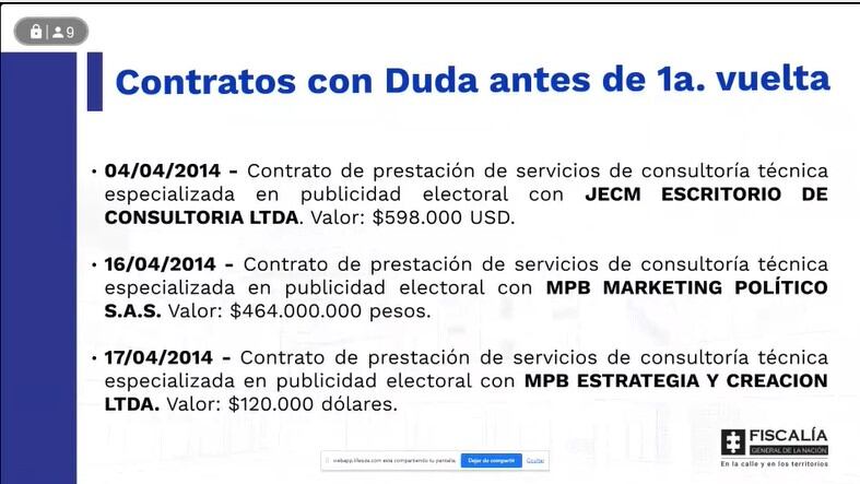 La Fiscalía reveló detalles de cómo ingresaron los dineros de esa compañía a la campaña “Zuluaga 2014″. Aseguró el ente acusador que ellos engañaron a las autoridades electorales y sabían que esos dineros eran ilegales.