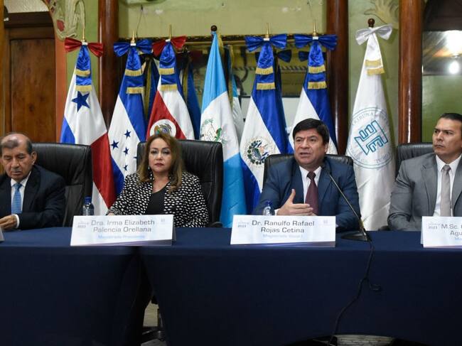 (L to R) Guatemalan Supreme Electoral Tribunal (TSE) magistrates Mynor Custodio, Irma Palencia, Ranulfo Rojas, and Gabriel Aguilera attend a press conference at the TSE in Guatemala City on July 10, 2023. (Photo by Orlando ESTRADA / AFP) (Photo by ORLANDO ESTRADA/AFP via Getty Images) / ORLANDO ESTRADA