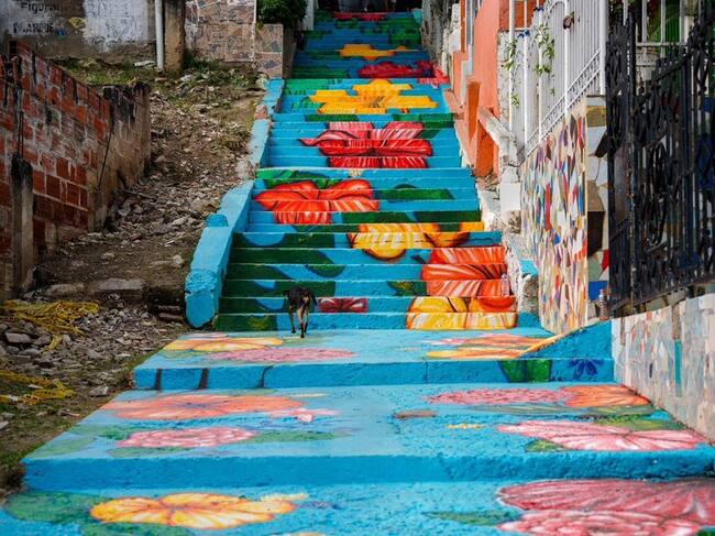 Escaleras con motivos florales, el nuevo atractivo turístico popular en Cartagena