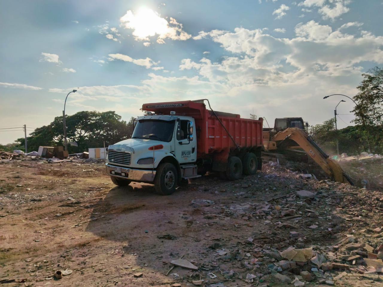 Se está trabajando con una flota de 28 volquetas, 1 retroexcavadora y 1 minicargador frontal con los que se espera evacuar entre 800 y 1000 toneladas diarias de escombros y así mitigar en tres semanas el impacto visual y paisajístico que se tiene en el sector y lo cual es foco de constantes quejas de los vecinos de la escombrera.