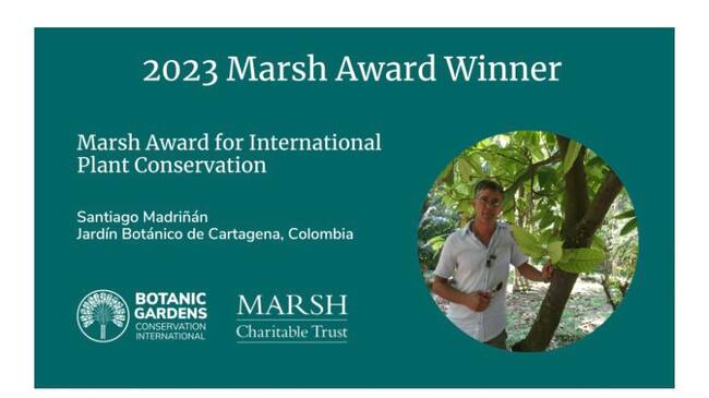 El profesor de Botánica y Director del Jardín Botánico de Cartagena, Santiago Madriñán, recibió un reconocimiento en el marco de los premios Marsh 2023, por sus aportes en la conservación internacional de plantas.