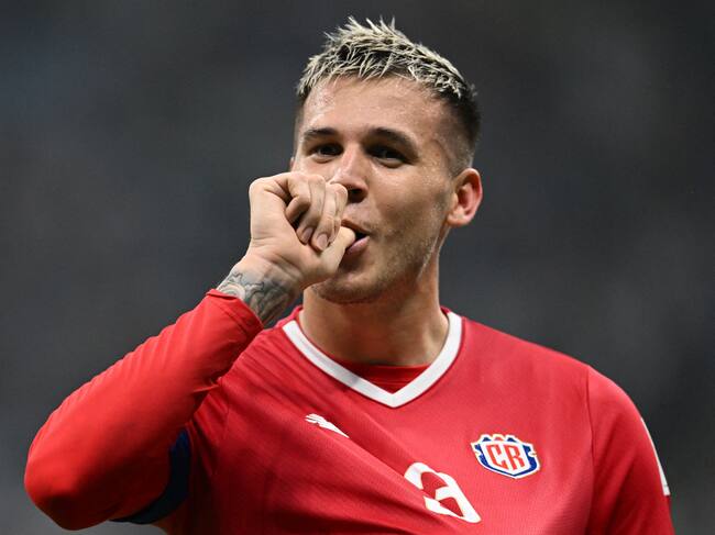 Juan Pablo Vargas festeja su gol en el Mundial ante Alemania. (Photo by RAUL ARBOLEDA/AFP via Getty Images) / RAUL ARBOLEDA