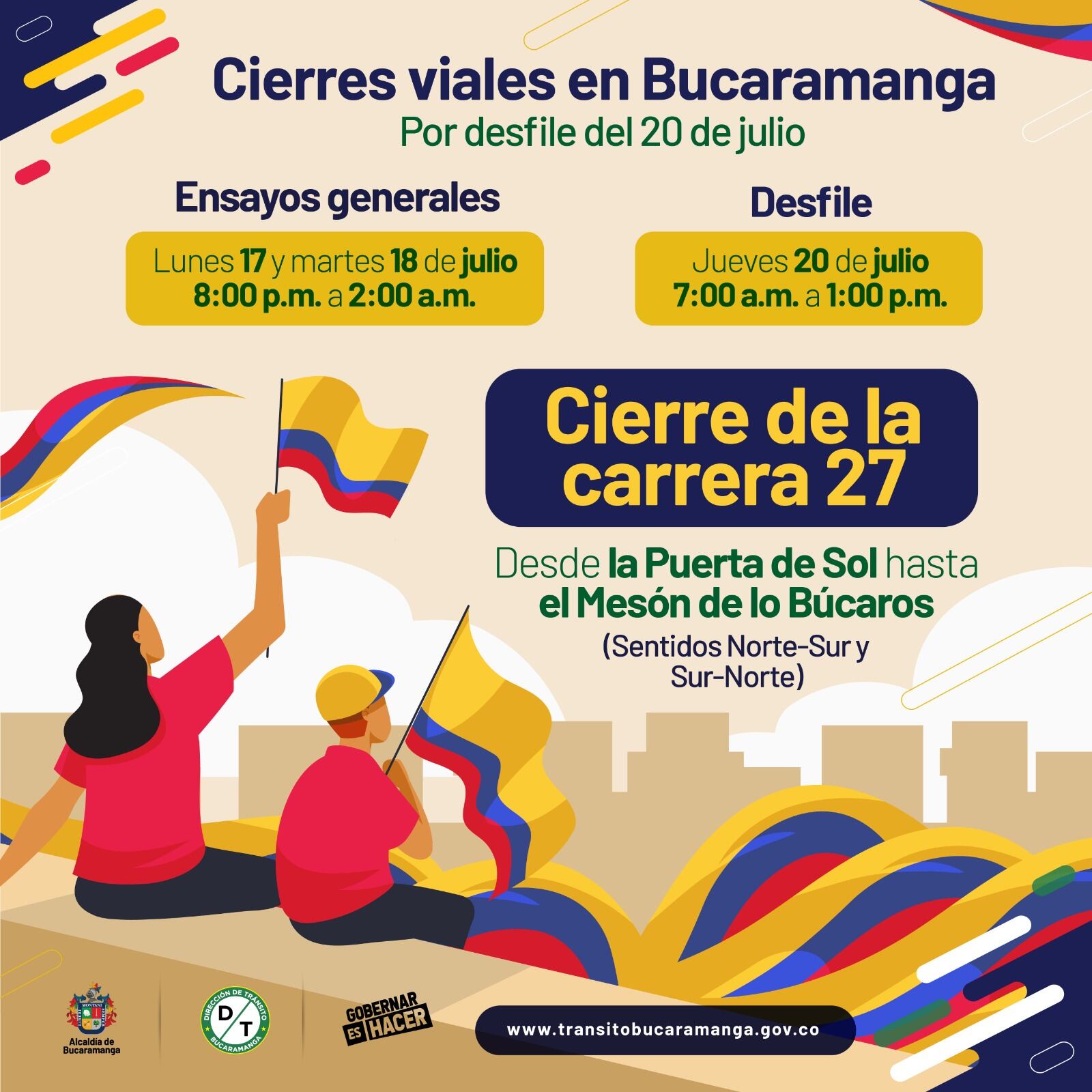 Desde las 8:00 p.m. y hasta las 2:00 a.m. del lunes 17 y martes 18 de julio estarán cerrados ambos sentidos de la carrera 27 desde la Puerta del Sol y hasta el Mesón de los Búcaros.