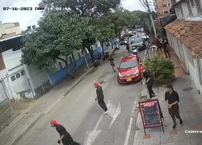 En varios videos grabados por cámaras de seguridad se ven los momentos de pánico que vivieron comensales y empleados de un restaurante ubicado en carrera 22 con calle 104 del barrio Provenza, al sur de Bucaramanga.