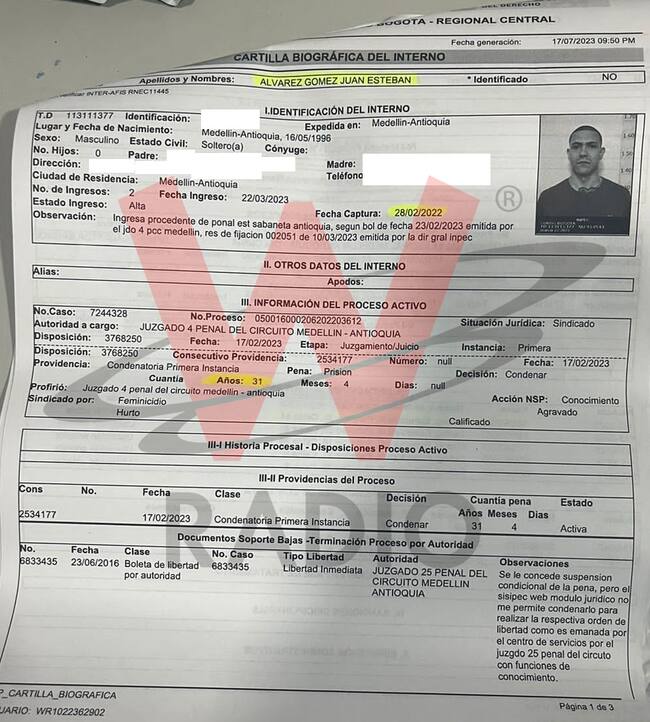 W Radio también conoció las identidades de quienes intentaron fugarse de la cárcel La Picota de Bogotá: