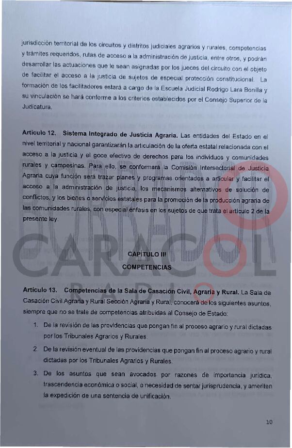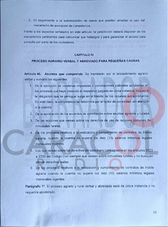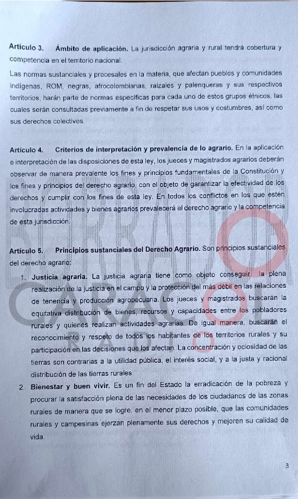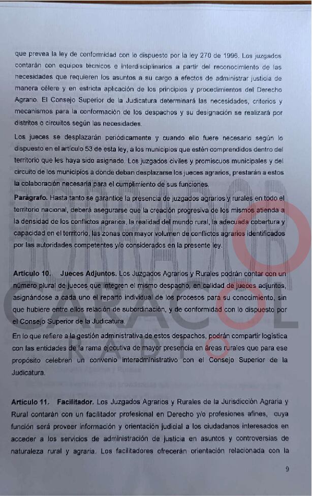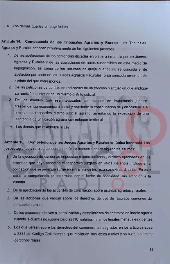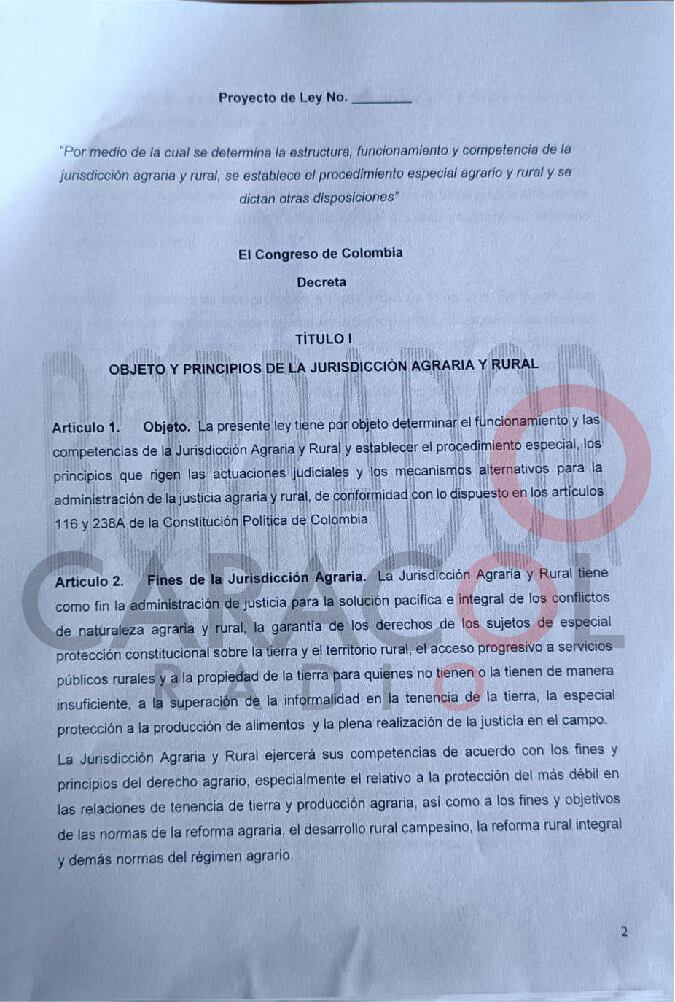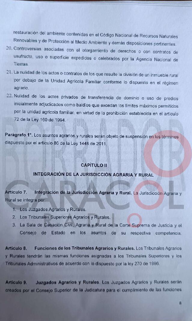 Caracol Radio conoció que el ministerio de Justicia ya tiene listo el borrador del proyecto de ley con el que propone reglamentar la Jurisdicción Agraria y Rural.