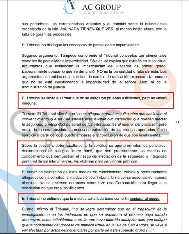 Su defensa interpuso una tutela porque el pasado 10 de julio, el Tribunal Superior de San Andrés, negó trasladar el juicio a Bogotá, al considerar que no hay pruebas que indiquen que el proceso se vería afectado por actos delictivos.