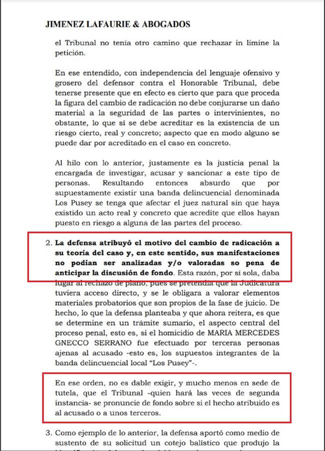 En la tutela, la defensa de Gnecco alega que el Tribunal no analizó las pruebas, e insiste que el arma homicida, supuestamente fue hallada en manos de un integrante de una banda criminal de San Andrés.