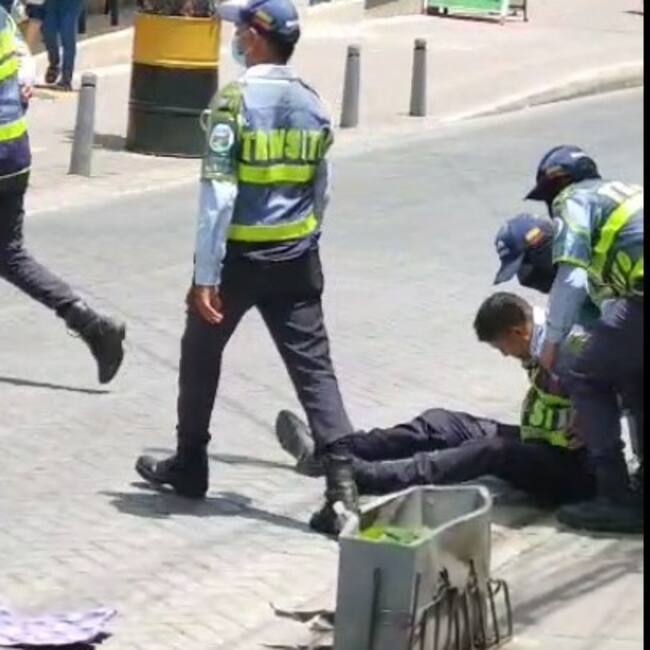 Los hechos ocurrieron en la calle 21 cerca al parque central cuando varios agentes de tránsito hacían controles y uno de ellos tuvo un altercado con el mototaxista.