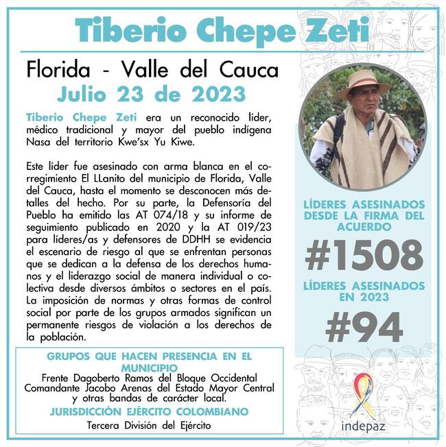 Entre tanto Indepaz ha señalado que la muerte del mayor y médico tradicional del pueblo indígena sería la numero 94 de los lideres asesinados en el 2023.
