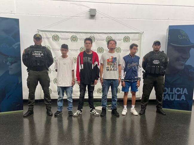 Capturados por extorsión en el Valle de Aburrá. Foto: cortesía Policía Metropolitana.