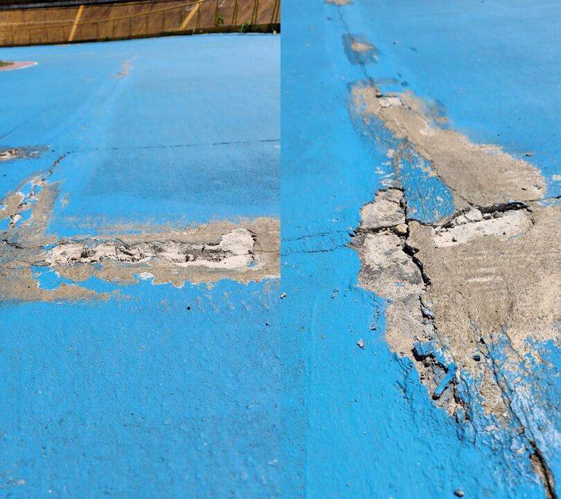 Según las denuncias de los padres de familia, hay casos como el de una menor que padece de una inflamación cerebral debido a una caida por uno de los huecos de la pista.