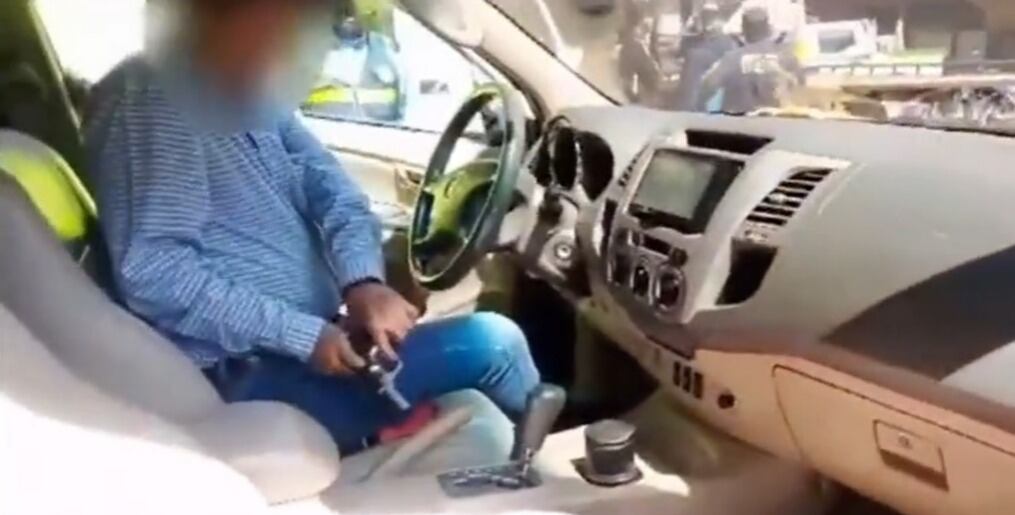 El conductor que en su vehículo llevaba un arma que sería de fuego, fue detenido por la Policía.