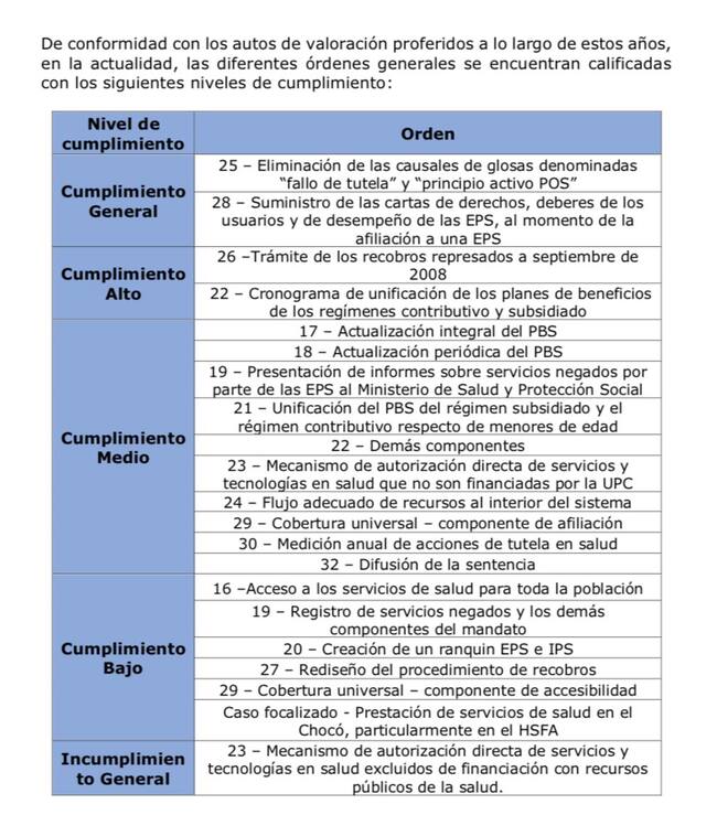 Lo anterior señalan que han permitido valorar el cumplimiento de las 16 órdenes, así como las emitidas en el caso focalizado del Hospital San Francisco de Asís de Quibdó.