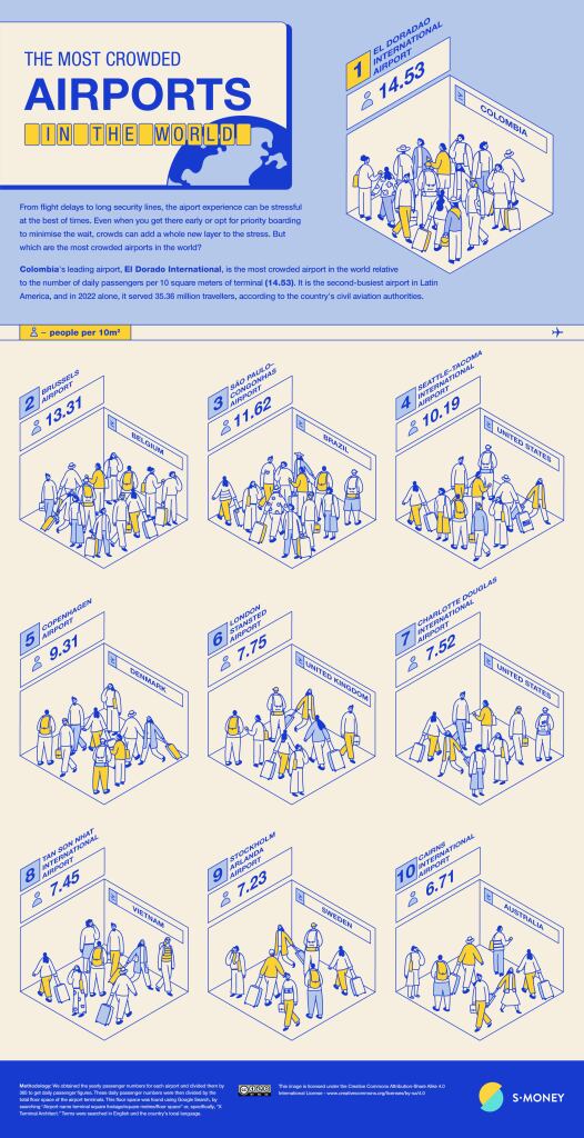 En total, son 14,53 pasajeros diarios por metro cuadrado, siendo la ciudad con el aeropuerto más concurrido del mundo, aventajando al Aeropuerto Internacional de Bruselas, el cual presenta 13,31 pasajeros por metro cuadrado.