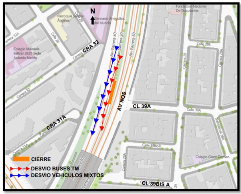 La Secretaría de Movilidad de Bogotá anunció que debido a una serie de obras de mantenimiento en la calzada exclusiva del Sistema de Transporte Masivo de Bogotá (Transmilenio) se llevará a cabo el cierre total de un tramo de la calzada en la Troncal Av. NQS.