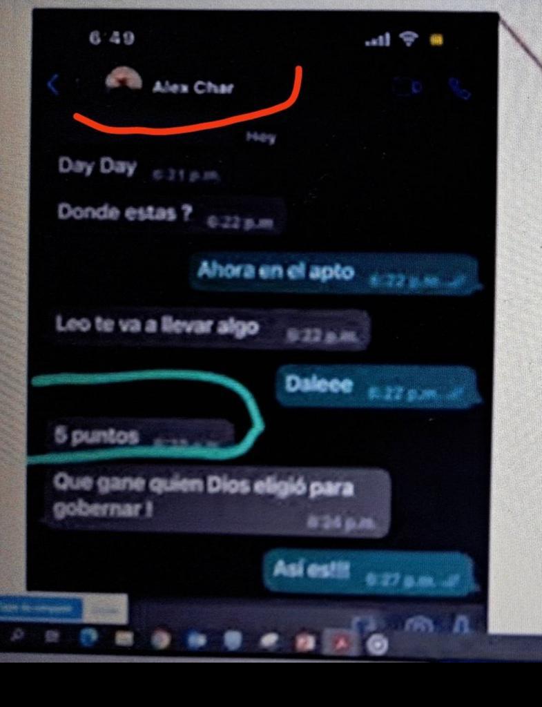 En la extensa presentación del fiscal Mario Burgos apareció una comunicación de Daysuris Vásquez con Alejandro (Álex) Char, el nuevamente candidato a la Alcaldía de Barranquilla. Sobre esa comunicación, el fiscal no dijo nada: ni esta boca es mía, pasó a toda máquina, en helicóptero.